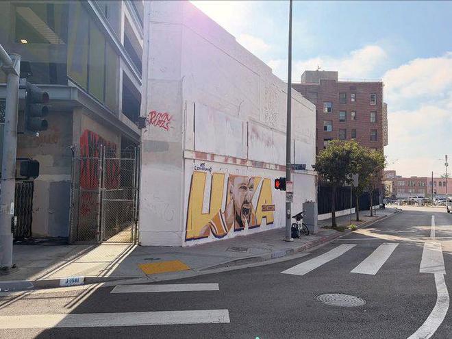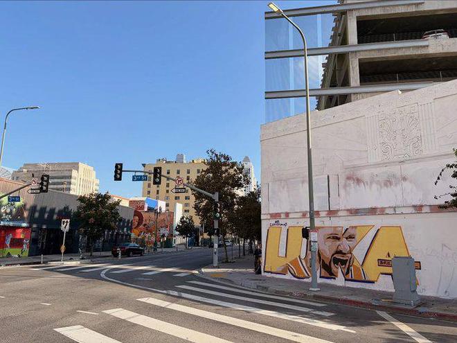 此前,有艺术家在街头的墙上制作了科比和东契奇握手的壁画。